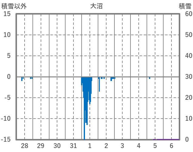 | 日 | 時 | 気温 | 降水 | 風向/風速 | 日照 | 積雪 | 降雪 |