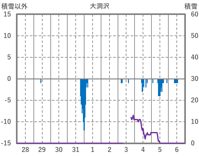 | 日 | 時 | 気温 | 降水 | 風向/風速 | 日照 | 積雪 | 降雪 |