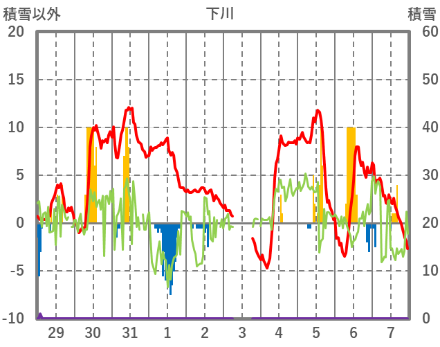 | 日 | 時 | 気温 | 降水 | 風向/風速 | 日照 | 積雪 | 降雪 |