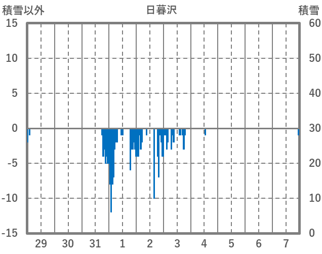 | 日 | 時 | 気温 | 降水 | 風向/風速 | 日照 | 積雪 | 降雪 |