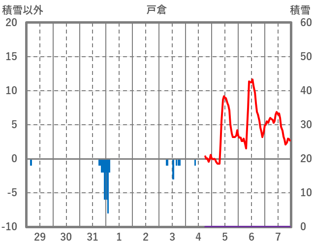 | 日 | 時 | 気温 | 降水 | 風向/風速 | 日照 | 積雪 | 降雪 |