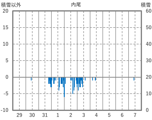 | 日 | 時 | 気温 | 降水 | 風向/風速 | 日照 | 積雪 | 降雪 |