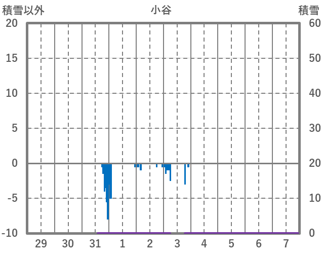 | 日 | 時 | 気温 | 降水 | 風向/風速 | 日照 | 積雪 | 降雪 |