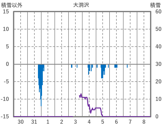 | 日 | 時 | 気温 | 降水 | 風向/風速 | 日照 | 積雪 | 降雪 |
