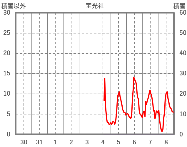 | 日 | 時 | 気温 | 降水 | 風向/風速 | 日照 | 積雪 | 降雪 |