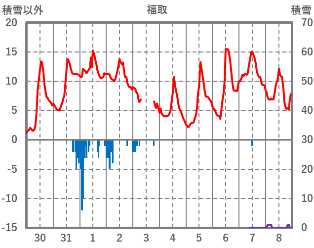 | 日 | 時 | 気温 | 降水 | 風向/風速 | 日照 | 積雪 | 降雪 |