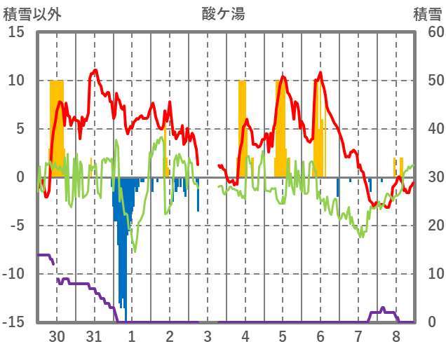 | 日 | 時 | 気温 | 降水 | 風向/風速 | 日照 | 積雪 | 降雪 |