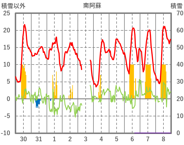 | 日 | 時 | 気温 | 降水 | 風向/風速 | 日照 | 積雪 | 降雪 |