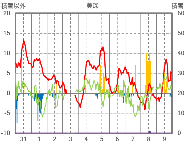 | 日 | 時 | 気温 | 降水 | 風向/風速 | 日照 | 積雪 | 降雪 |