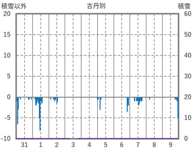 | 日 | 時 | 気温 | 降水 | 風向/風速 | 日照 | 積雪 | 降雪 |