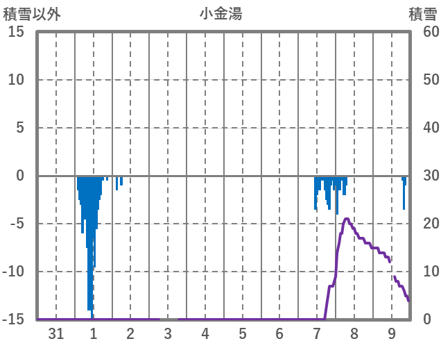 | 日 | 時 | 気温 | 降水 | 風向/風速 | 日照 | 積雪 | 降雪 |