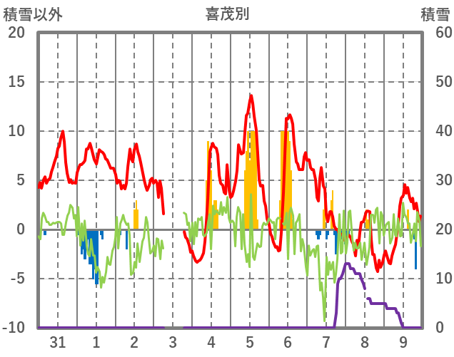 | 日 | 時 | 気温 | 降水 | 風向/風速 | 日照 | 積雪 | 降雪 |