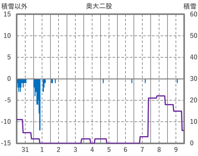 | 日 | 時 | 気温 | 降水 | 風向/風速 | 日照 | 積雪 | 降雪 |