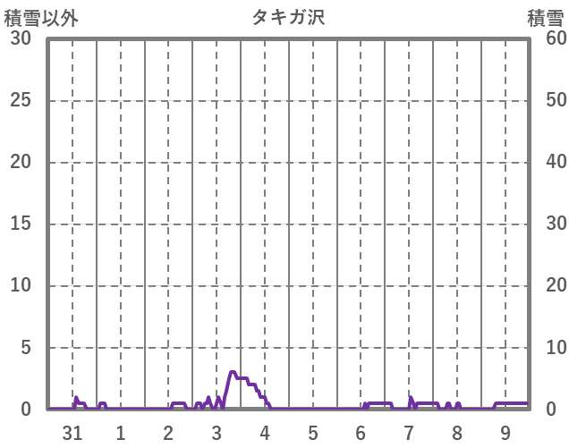 | 日 | 時 | 気温 | 降水 | 風向/風速 | 日照 | 積雪 | 降雪 |