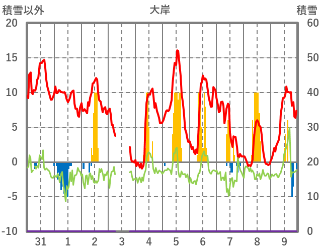 | 日 | 時 | 気温 | 降水 | 風向/風速 | 日照 | 積雪 | 降雪 |