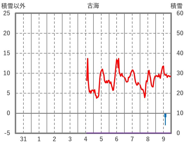 | 日 | 時 | 気温 | 降水 | 風向/風速 | 日照 | 積雪 | 降雪 |