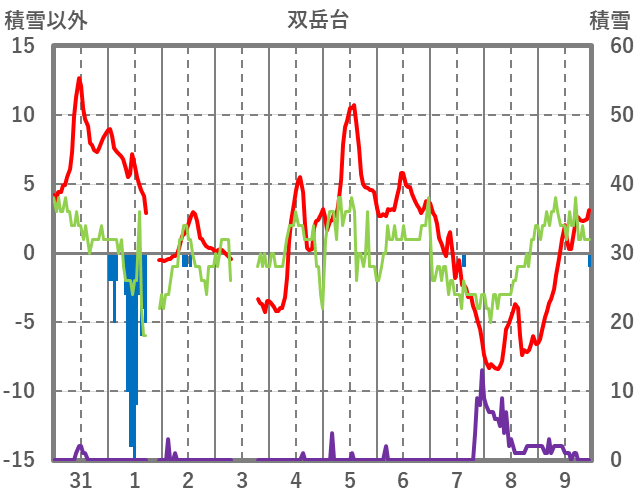 | 日 | 時 | 気温 | 降水 | 風向/風速 | 日照 | 積雪 | 降雪 |