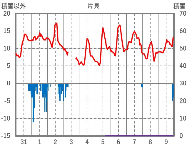 | 日 | 時 | 気温 | 降水 | 風向/風速 | 日照 | 積雪 | 降雪 |