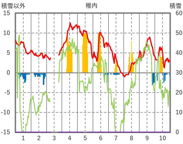 | 日 | 時 | 気温 | 降水 | 風向/風速 | 日照 | 積雪 | 降雪 |