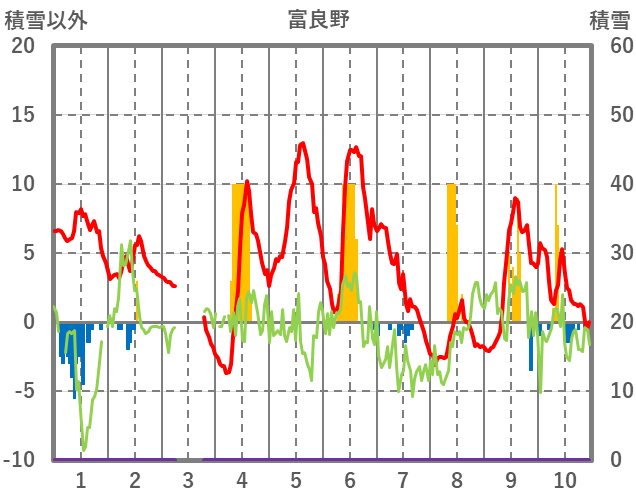 | 日 | 時 | 気温 | 降水 | 風向/風速 | 日照 | 積雪 | 降雪 |