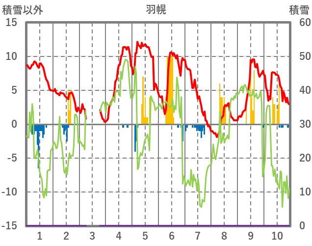 | 日 | 時 | 気温 | 降水 | 風向/風速 | 日照 | 積雪 | 降雪 |