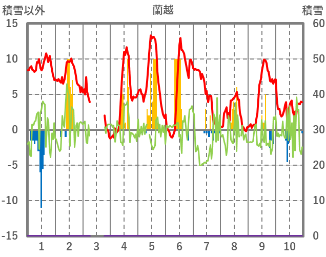 | 日 | 時 | 気温 | 降水 | 風向/風速 | 日照 | 積雪 | 降雪 |