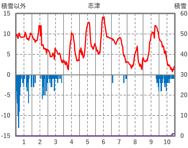 | 日 | 時 | 気温 | 降水 | 風向/風速 | 日照 | 積雪 | 降雪 |