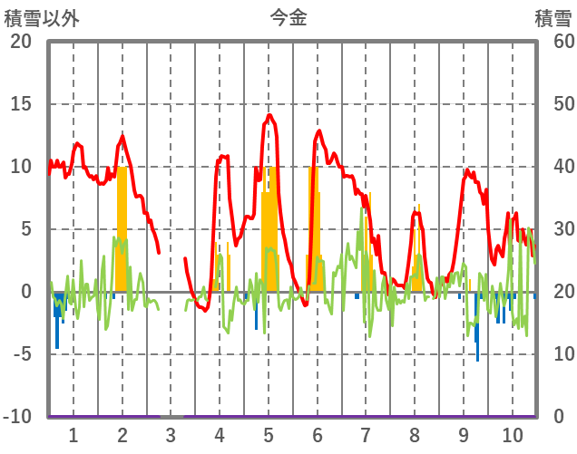 | 日 | 時 | 気温 | 降水 | 風向/風速 | 日照 | 積雪 | 降雪 |