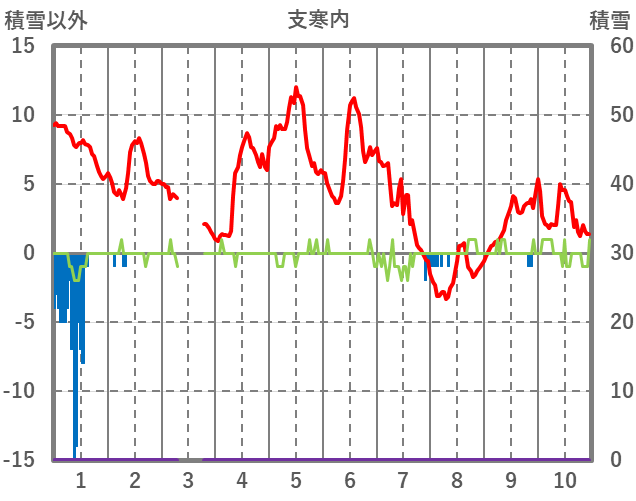 | 日 | 時 | 気温 | 降水 | 風向/風速 | 日照 | 積雪 | 降雪 |