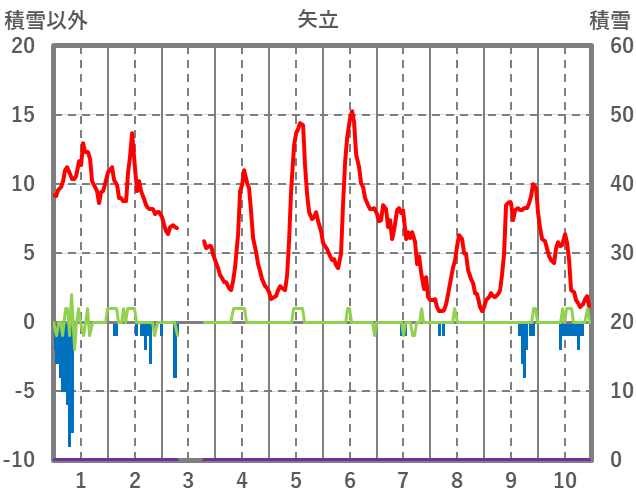 | 日 | 時 | 気温 | 降水 | 風向/風速 | 日照 | 積雪 | 降雪 |