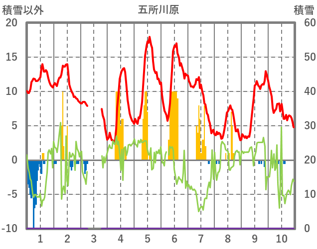 | 日 | 時 | 気温 | 降水 | 風向/風速 | 日照 | 積雪 | 降雪 |
