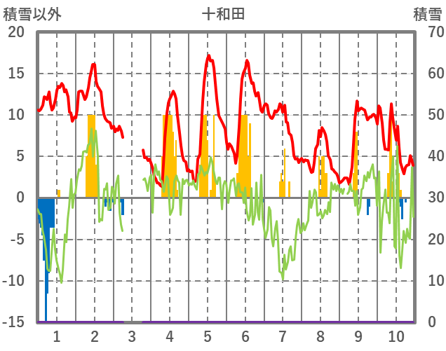 | 日 | 時 | 気温 | 降水 | 風向/風速 | 日照 | 積雪 | 降雪 |