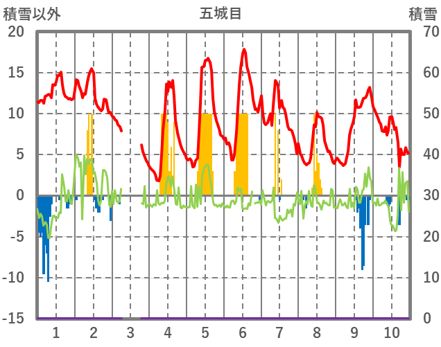 | 日 | 時 | 気温 | 降水 | 風向/風速 | 日照 | 積雪 | 降雪 |