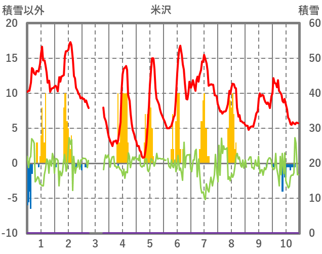 | 日 | 時 | 気温 | 降水 | 風向/風速 | 日照 | 積雪 | 降雪 |