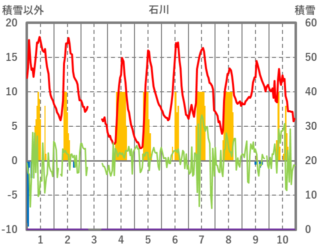 | 日 | 時 | 気温 | 降水 | 風向/風速 | 日照 | 積雪 | 降雪 |