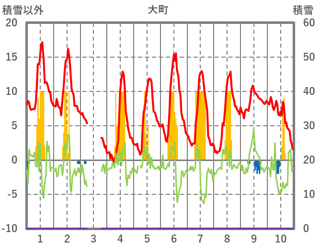 | 日 | 時 | 気温 | 降水 | 風向/風速 | 日照 | 積雪 | 降雪 |