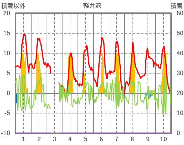 | 日 | 時 | 気温 | 降水 | 風向/風速 | 日照 | 積雪 | 降雪 |