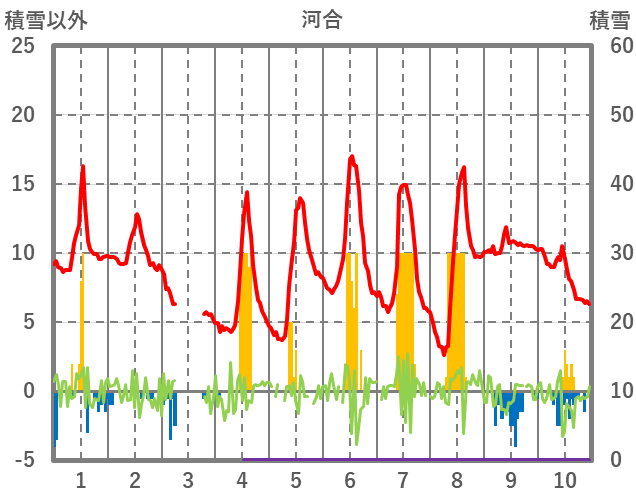 | 日 | 時 | 気温 | 降水 | 風向/風速 | 日照 | 積雪 | 降雪 |