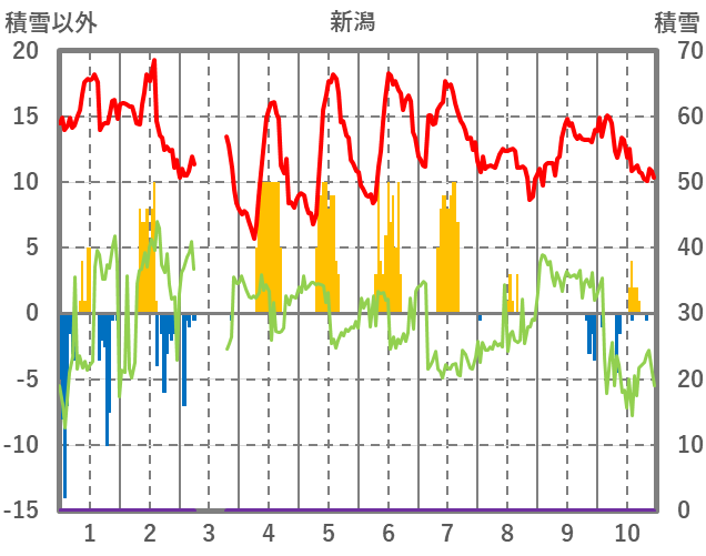 | 日 | 時 | 気温 | 降水 | 風向/風速 | 日照 | 積雪 | 降雪 |