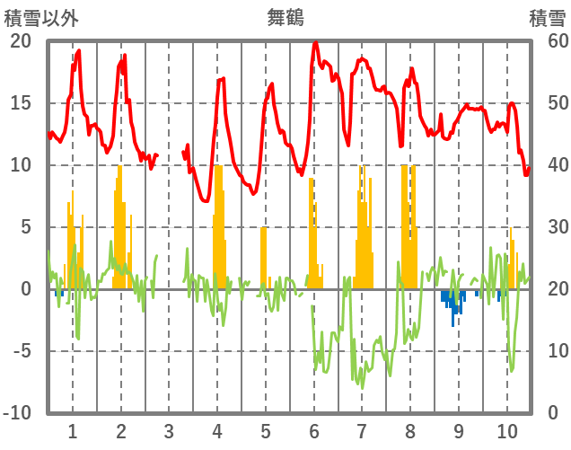 | 日 | 時 | 気温 | 降水 | 風向/風速 | 日照 | 積雪 | 降雪 |
