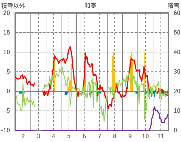 | 日 | 時 | 気温 | 降水 | 風向/風速 | 日照 | 積雪 | 降雪 |