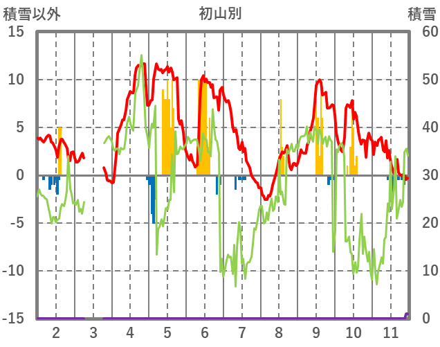 | 日 | 時 | 気温 | 降水 | 風向/風速 | 日照 | 積雪 | 降雪 |