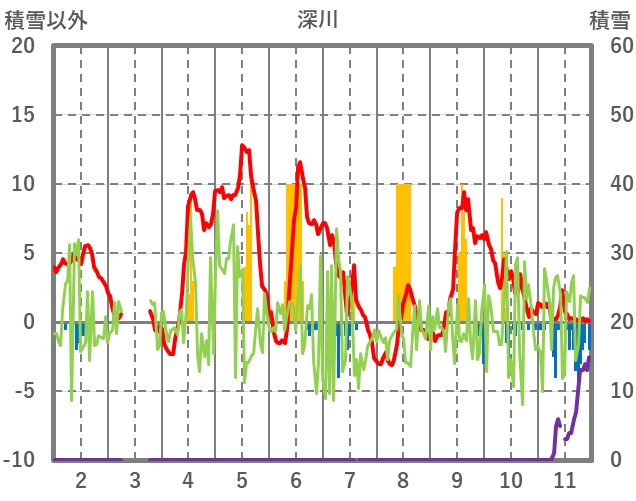 | 日 | 時 | 気温 | 降水 | 風向/風速 | 日照 | 積雪 | 降雪 |