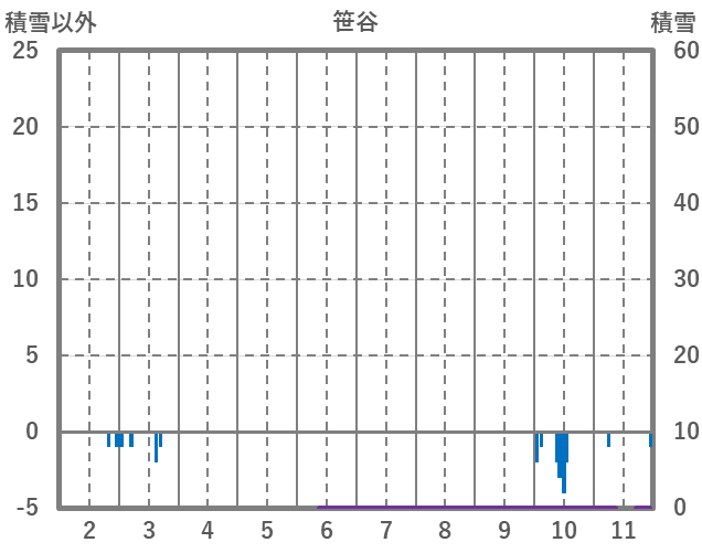 | 日 | 時 | 気温 | 降水 | 風向/風速 | 日照 | 積雪 | 降雪 |