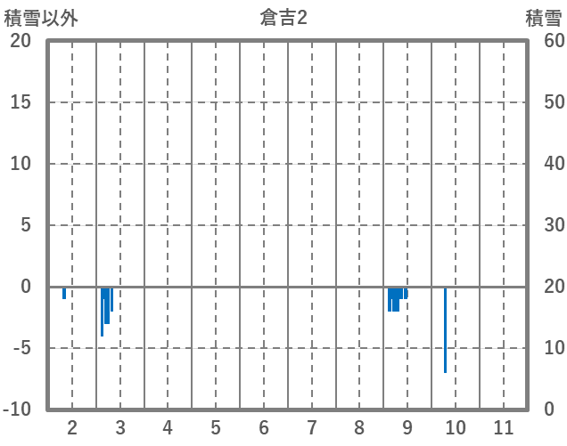| 日 | 時 | 気温 | 降水 | 風向/風速 | 日照 | 積雪 | 降雪 |