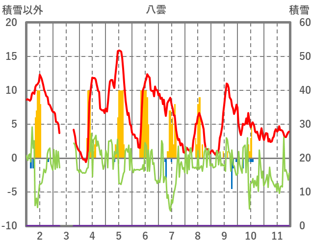 | 日 | 時 | 気温 | 降水 | 風向/風速 | 日照 | 積雪 | 降雪 |