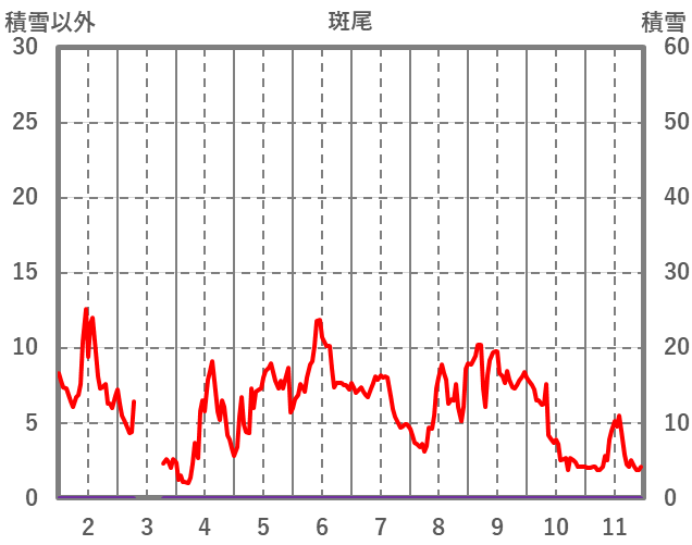 | 日 | 時 | 気温 | 降水 | 風向/風速 | 日照 | 積雪 | 降雪 |