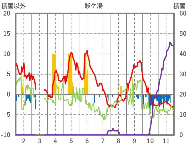 | 日 | 時 | 気温 | 降水 | 風向/風速 | 日照 | 積雪 | 降雪 |