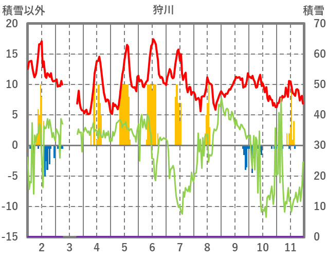 | 日 | 時 | 気温 | 降水 | 風向/風速 | 日照 | 積雪 | 降雪 |
