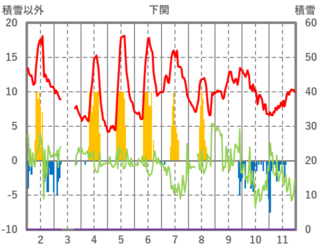 | 日 | 時 | 気温 | 降水 | 風向/風速 | 日照 | 積雪 | 降雪 |